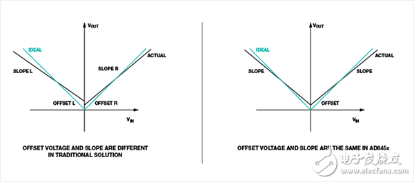 圖7. AD845x 在充電和放電模式下具有相同的失調(diào)和斜率