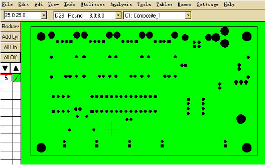 每一個(gè)PCB板基本上都是由孔徑孔位層、DRILL層、線路層、阻焊層、字符層所組成的,在CAM350中,每載入一層都會(huì)以不同的顏色區(qū)分開