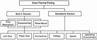 可以選用的打印技術(shù)主要有三類(lèi):直接熱敏技術(shù)、熱轉(zhuǎn)印技術(shù)和擊打式技術(shù)。直接熱敏打印采用熱敏打印頭將專(zhuān)用打印紙上的熱敏材料熔化變色,從而生成圖像。直接熱敏打印組件輕便、經(jīng)濟(jì)、省電、一般噪聲也小,而且唯一的消耗材料就是熱敏打印紙。