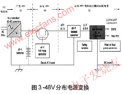 4 集中供電方式是指將源設(shè)備集中安裝在電力室和電池室,通信用電能經(jīng)統(tǒng)一變換分配后向各通信設(shè)備供電的方式。