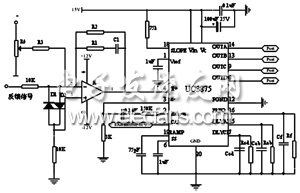 PWM移相控制是通過UC3875的誤差放大器來實(shí)現(xiàn)的,在UC3875的4角上接PI調(diào)節(jié)器,利用電壓傳感器將輸出電壓與給定基準(zhǔn)電壓相比較,從而控制A、B與C、D之間的相位,最終調(diào)整波形占空比,使電源穩(wěn)定在預(yù)定值上。A/B、D/C兩個(gè)半橋,可單獨(dú)進(jìn)行導(dǎo)通延時(shí)(即死區(qū)時(shí)間)的控制,在該死區(qū)時(shí)間內(nèi)確保下一個(gè)功率開關(guān)器件的輸出電容放電完畢,為即將導(dǎo)通的開關(guān)器件提供電壓開通條件。