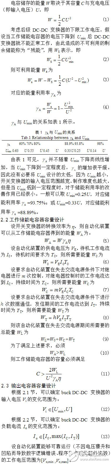 摘要:為了在失電情況下繼續(xù)維持智能終端設(shè)備短暫工作,提出了一種基于電容儲能的自動化終端備用開關(guān)電源解決方案。論述了電路組成、下限工作電壓選取和儲能電容器容量設(shè)計(jì)方法。根據(jù)能量平衡關(guān)系,分析了負(fù)載突然