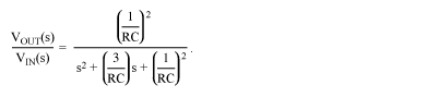 The transfer characteristic of a second-order cascade low-pass filter with equal-value Rs and Cs is