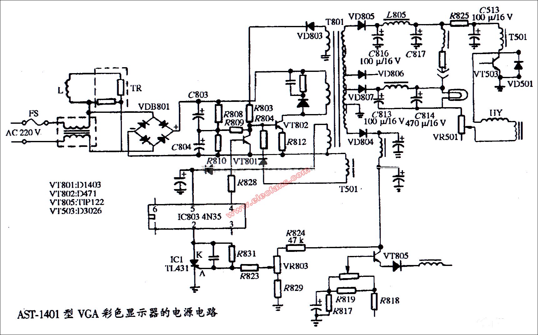 AST-4型彩色顯示器電源電路圖
