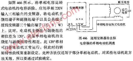 通用變頻器給去掉電容器的單相電動機調(diào)速圖