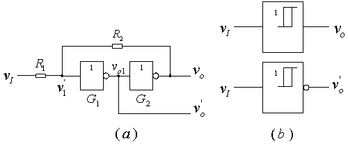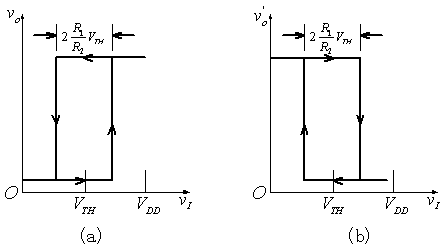)。普通門電路的電壓傳輸特性曲線是單調(diào)的,施密特觸發(fā)器的電壓傳輸特性曲線則是滯回的[圖6.2.2(a)(b)]。
