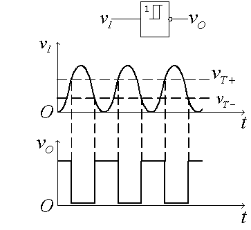 圖6.2.8 用施密特觸發(fā)器實(shí)現(xiàn)波形變換