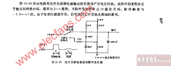 采用繼電器或開關(guān)來激勵的脈沖發(fā)生器電路圖