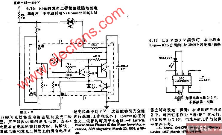 普通LED指示燈為43~47K,2W~3W電阻。電流一般為5mA(高亮LED指示燈連接的電阻為110~150K,1/2w,電流一般為2mA),燈具應與IN4007或IN4007的LED指示燈反向并聯連接。