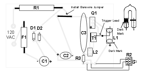 4. Do not operate this circuit at high flash rates for more than about 30 seconds or else C1 and C2 will overheat and explode.
