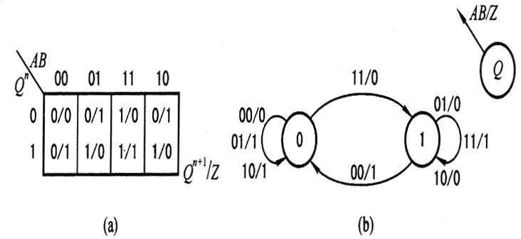 ???? 式(4-2-1)中輸出是輸入變量和狀態(tài)變量的函數(shù)。這種時(shí)序電路稱為米里(mealy)型電路。