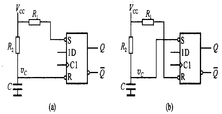 ??? 圖4-2-17(a)所示是實(shí)現(xiàn)異步信號(hào)同步化的一種電路。
