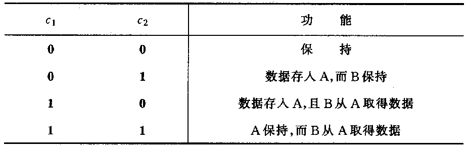 ??? (1)當(dāng)c1c2 = 00時(shí),c=0,G1和G3~G6關(guān)閉,此時(shí)將不會(huì)有時(shí)鐘脈沖加到A組和B組觸發(fā)器上,故這兩組觸發(fā)器的狀態(tài)保持不變。