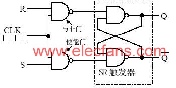電平觸發(fā)器的邏輯結(jié)構(gòu),只有CLK為高電平的時(shí)候才能接受輸入信號(hào),并按照輸入信號(hào)將觸發(fā)器輸出置成相應(yīng)的輸出。它是由一個(gè)SR觸發(fā)器和兩個(gè)與非門組成,又稱為同步SR觸發(fā)器。