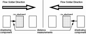 再比如,器件在PCB上的方向和不同器件互相之間間隔的設(shè)定(見圖3),對(duì)產(chǎn)品在制造過程中出現(xiàn)故障的幾率也起到相當(dāng)重要的作用。如果器件排布的方向與工藝走向不符,如果小器件被大器件所遮蔽,那么這些器件必然會(huì)發(fā)生“合理”的故障。