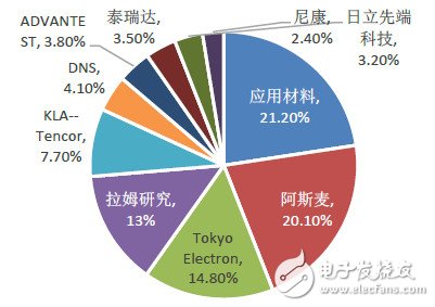 2015年全球半導(dǎo)體設(shè)備出貨金額為365.3億美元,低于2014年的375.0億美元(約1.23兆元臺(tái)幣)銷售額。在全球格局中,美國應(yīng)用材料公司獲得21.2%份額,阿斯麥占20.1%,東京電子14.8%、拉姆研究13%,絕大多數(shù)集中在美國、荷蘭、日本等地,沒有中國廠商的身影;從結(jié)構(gòu)類型來看,84%市場(chǎng)為前端晶圓制程設(shè)備,封裝和測(cè)試設(shè)備分別占7%和9%。另外從絕大多數(shù)生產(chǎn)用原材料看也是被日本、美國和歐洲國家壟斷,國內(nèi)廠商突破還需要較長時(shí)間。