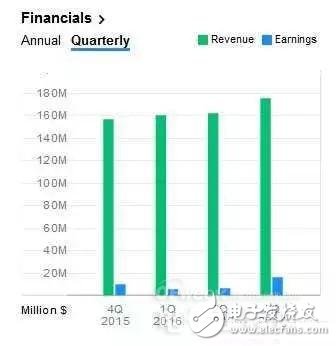 Silicon Labs從2015Q4-2016Q3的營收與盈余統(tǒng)計(jì) (來源:Yahoo Finance)