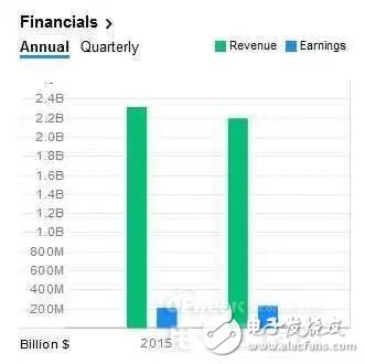 Maxim在2015與2016年的營收與盈余 (來源:Yahoo Finance)