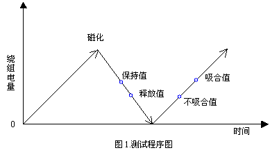 ... 繼電器的不吸動值、吸合值、保持值、釋放值測試按圖1所示的測試程序圖進(jìn)行。該測試程序為生產(chǎn)單位和使用單位共同遵守的統(tǒng)一方法,其最大優(yōu)點(diǎn)是測試的參數(shù)重復(fù)性好,它并不表示實際使用中繼電器要先磁化,后工作。