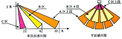 ????當(dāng)人進(jìn)入感應(yīng)范圍,人體釋放的紅外光透過鏡片被聚集在遠(yuǎn)距離A區(qū)或中距離B區(qū)或近距離C區(qū)的某個(gè)段的同心環(huán)上,同心環(huán)與紅外線探頭有一個(gè)適當(dāng)?shù)慕咕啵t外光正好被探頭接收,探頭將光信號(hào)變成電信號(hào)送入電子電路驅(qū)動(dòng)負(fù)載工作。整個(gè)接收人體紅外光的方式也被稱為被動(dòng)式紅外活動(dòng)目標(biāo)探測(cè)器。