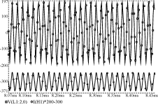 圖2使用一個(gè)簡(jiǎn)單電路驗(yàn)證一下燈模型,拓?fù)鋬H由一個(gè)CLASS-D逆變器構(gòu)成。參數(shù)為L(zhǎng)s=1.56mH,Cr=5.6nF,fs=45kHz,D=0.45。