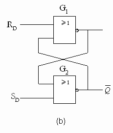雙穩(wěn)態(tài)器件有兩類:一類是觸發(fā)器,一類是鎖存器。鎖存器是觸發(fā)器的原始形式?;炬i存器由一對(duì)互耦的邏輯門組成【圖4.2.1(b)(c), 圖4.2.2(a)(b)】。