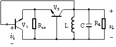 在集成電路振蕩器里,廣泛采用如圖 6-29(a) 所示的差分對管振蕩電路,其中 V 2 管集電極外接的 LC 回路調諧在振蕩頻率上。 (b) 圖為其交流等效電路。 (b) 圖中 R ce 為恒流源 I 0 的交流等效電阻??梢姡@是一個共集 – 共基反饋電路。由于共集電路與共基電路均為同相放大電路,且電壓增益可調至大于 1 ,根據(jù)瞬時極法判斷,在 V 1 管基極斷開,有 v b1 - ? v be ( v e2 ) - ? v c2 - ? v b1 - ,所以是正反饋。在振蕩頻率點,并聯(lián) LC 回路阻抗最大,正反饋電壓 v f ( v o ) 最強,且滿足相位穩(wěn)定條件。綜上所述,此振蕩器電路能正常工作。