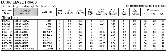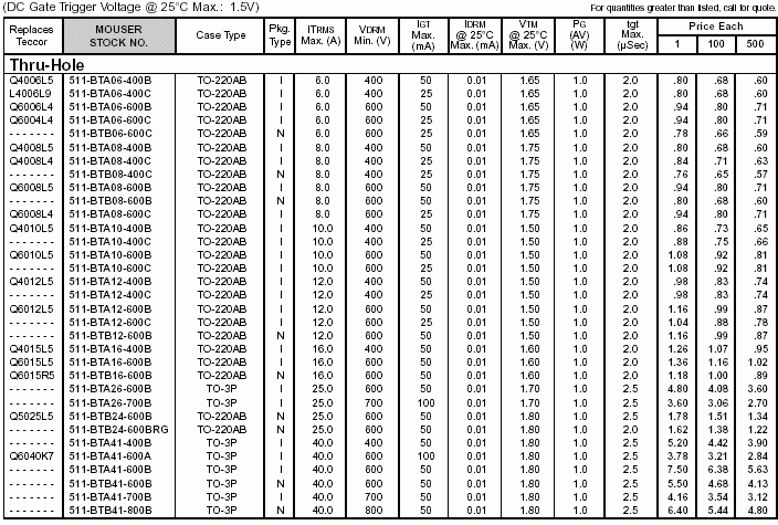 雙向可控硅參數(shù)(國外型號)