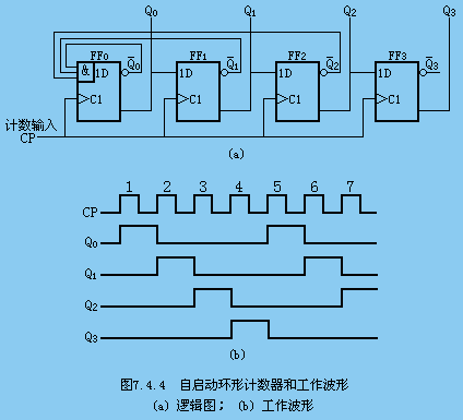 自啟動(dòng)扭環(huán)計(jì)數(shù)器,為同步時(shí)序邏輯電路。