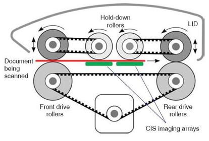 送入SmartLF Cx系列掃描儀的原稿經(jīng)雙排高精密度驅(qū)動軸和雙排全輪驅(qū)動等高校準的橡膠滾輪傳送的同時,采用了兩根最新的同步滾筒壓紙。 當原稿傳動到玻璃表面時,兩根壓紙滾筒在從動滾筒的同步帶動下同時保證了將原稿壓平整,同時確保在文件通過掃描窗口時得到最適宜的支撐和最精確的定位,并且滾筒可以有效的保障 原稿平穩(wěn)的通過掃描儀。