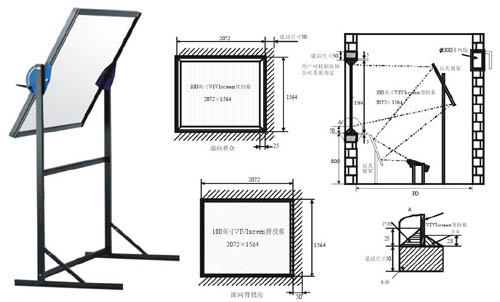 下圖為100英寸背投工程的反射系統(tǒng)的設計圖: