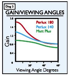 所有銀幕的可見亮度隨著觀看角度不同而不同,但總體來說在給定功率的放映燈條件下所有增益銀幕都提供了比白塑幕亮度更高的畫面(見圖2)。