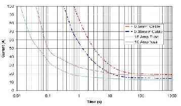 熔斷器的工作原則是一個簡單的I2R與時間的關系。電流越大,熔斷或開路時間越短。熔斷器的功耗與通過熔斷器的電流的平方成正比。當功耗過高時,熔斷器熔斷。這個特性同樣適用于受熔斷器保護的線束。當熔斷器的“熔斷”特性與所保護的線束相似,只是處理電流能力略低時,熔斷器是一個理想的選擇。