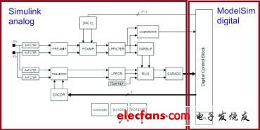 圖 8 模擬前端和數字塊的共同仿真