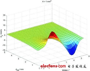 要開發(fā)傳感器系統(tǒng),首先必須對預期的磁輸入信號有一個總體了解。首先要了解編碼器輪和傳感器頭上永磁體的標準規(guī)格,以及預期尺寸和公差。通過 ANSYS 方法進行 FEM 仿真可確定磁場。這里就有對編碼器輪、傳感器元件和磁體進行建模的問題(圖 5)。然后便可根據傳感器元件和編碼器輪之間的距離,確定與之呈函數關系的磁場強度。圖 6 是傳感器橋上的磁輸入信號與距離呈函數關系的三維圖示。很容易看出輸入信號呈正弦曲線,信號振幅隨距離增加而明顯減小。除了距離之外,位置偏離也會導致振幅減小。例如,如果傳感器頭不在編碼器輪前面的中心位置,那么信號振幅也會減小。根據 FEM仿真方法,這樣也可將機械規(guī)范轉化成預期磁變量。與氣隙變化不同,傾斜會導致偏移,這同樣會影響系統(tǒng)的正常運轉。FEM 仿真也可以預估其造成的影響(圖 7),而且結果可直接轉化為可容許的位置公差。