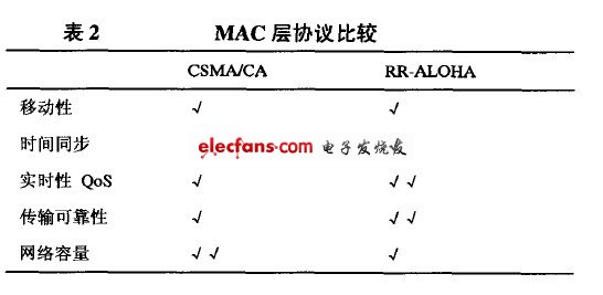 不過對于車載自組網(wǎng)的特殊性,預(yù)約式的同步MAC協(xié)議效果可能更好些。表2對CSMA/CA 和RR—ALOHA 這兩種MAC協(xié)議進(jìn)行了簡單的比較。