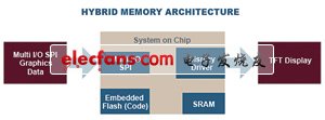 汽車芯片組和閃存供應(yīng)商的不斷創(chuàng)新催生出極具成本效益的全新混合數(shù)字式儀表群架構(gòu)(如圖3所示)。系統(tǒng)控制器(Freescale Spectrum)和閃存(Spansion Multi I/O SPI)可以優(yōu)化TFT顯示架構(gòu),提供更具成本效益的入門級儀表群解決方案。系統(tǒng)控制器通過嵌入式閃存執(zhí)行代碼,同時(shí)利用高帶寬多I/O SPI協(xié)議加載來自外部閃存的圖形數(shù)據(jù)。圖形數(shù)據(jù)在內(nèi)部幀緩沖區(qū)進(jìn)行處理并保存,然后直接顯示到TFT屏幕上。這種大膽創(chuàng)新的混合架構(gòu)無需外部DRAM存儲器,不僅能夠滿足系統(tǒng)的性能和可靠性需求,同時(shí)可以優(yōu)化成本。
