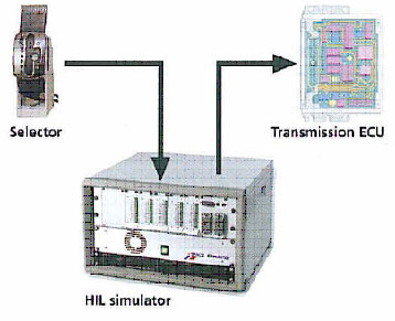 一個ECU開發(fā)完成后,必須對其功能進行全面的測試?,F在由于控制系統(tǒng)所完成功能的日漸復雜性,對其進行全面綜合的測試,特別是故障情況和極限條件下測試就顯得尤為重要。但如果用實際的控制對象進行測試,很多情況是無法實現的,或要付出高昂的代價,但如果用計算機輔助設計工具對被控對2.1 變速箱ECU開發(fā)的HIL測試象進行實時仿真,就可以進行各種條件下的測試,特別是故障和極限條件下的測試。