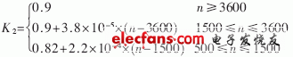 第二階段:電機轉(zhuǎn)速變化范圍為3600r/min~1500r/min,電機的發(fā)電效率變化范圍為0.9~0.82,要求制動時間t2≤5s。