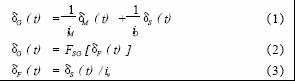 ??? 式(1)給出了小齒輪轉(zhuǎn)角、轉(zhuǎn)向盤轉(zhuǎn)角和電機轉(zhuǎn)角的關(guān)系,δM為電機轉(zhuǎn)角,δG為小齒輪轉(zhuǎn)角,δS為轉(zhuǎn)向盤轉(zhuǎn)角,iM為電機頭部處蝸輪蝸桿的傳動比,iD為連接轉(zhuǎn)向盤的行星齒輪機構(gòu)的傳動比;式(2)中的FSG為δG和前輪轉(zhuǎn)角δF的非線性函數(shù)關(guān)系;式(3)給出了δS和δF的關(guān)系,iv為整個轉(zhuǎn)向系統(tǒng)傳動比。