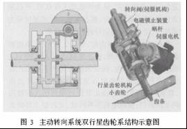 ??? (4)雙行星齒輪機構(gòu)與轉(zhuǎn)向管柱、轉(zhuǎn)向小齒輪集成在一起,使結(jié)構(gòu)更加緊湊。