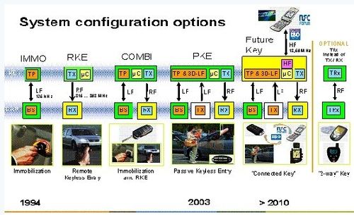 2003,NXP推出了無鑰匙系統(tǒng)(PKE或稱PEPS),徹底改變了汽車安防應(yīng)用領(lǐng)域的發(fā)展前景,給用戶帶來了全新舒適與便利的體驗(yàn):車主在整個(gè)駕車過程中都完全不需要使用鑰匙,只需要隨身攜帶。當(dāng)車主進(jìn)入車子附近的有效范圍時(shí),車子會(huì)自動(dòng)檢測鑰匙并進(jìn)行身份識別,如成功會(huì)相應(yīng)的打開車門或后備箱;當(dāng)車主進(jìn)入車內(nèi),只需要按引擎啟動(dòng)按鈕,車子會(huì)自動(dòng)檢測鑰匙的位置,判斷鑰匙是否在車內(nèi),是否在主駕位置,如成功則發(fā)動(dòng)引擎。千萬不要小瞧這個(gè)看似不起眼的改變,它在簡化你的生活方面發(fā)揮著重大作用。無鑰匙系統(tǒng)絕不僅僅是帶來了舒適與方便,其在安全性方面也有了本質(zhì)的提高,通過低頻和射頻的雙向通訊,汽車與鑰匙之間可以完成復(fù)雜的雙向身份認(rèn)證,在安全性方面與引擎防盜類似,要遠(yuǎn)好于傳統(tǒng)的遙控鑰匙。從2003年少量高端車型成功量產(chǎn)無鑰匙系統(tǒng)開始,全球市場用了兩到三年的時(shí)間推廣普及這一技術(shù),目前,幾乎全球每一個(gè)主流車廠都有應(yīng)用NXP的無鑰匙產(chǎn)品,覆蓋中高端的車型,甚至是低端車型。
