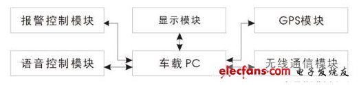 目前的車載GPS系統(tǒng)終端通常由GPS模塊、無線通信模塊、報警控制模塊、語音控制模塊、顯示模塊和車載PC等幾個部分組成: