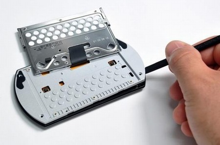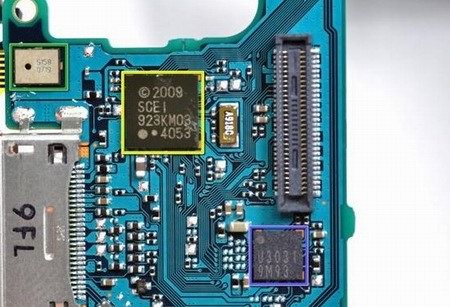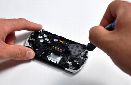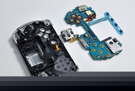 與iPod、Zune HD等機(jī)型不同,PSP go的內(nèi)部沒有使用任何框架,所有結(jié)構(gòu)都是由塑料外殼進(jìn)行支撐。
