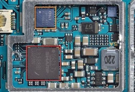 兩顆芯片,編號:SCEI 923KMO3 4053和U3031 9M93。綠色框中元件的則是直接安裝在主板上的麥克風(fēng)。