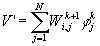 對(duì)河網(wǎng)內(nèi)部第k+1層節(jié)點(diǎn),輸入輸出關(guān)系為: