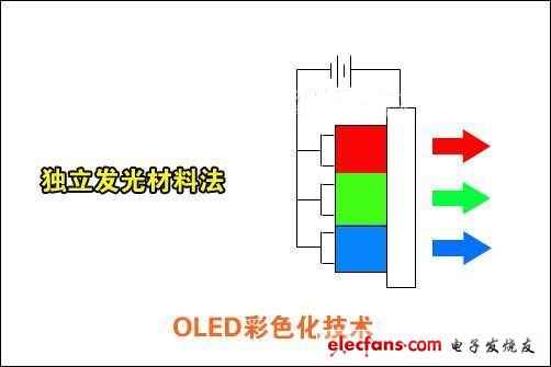 RGB 像素獨立發(fā)光,光色轉(zhuǎn)換和彩色濾光膜三種制造 OLED 顯示器全彩 色化技術(shù),各有優(yōu)缺點??筛鶕?jù)工藝結(jié)構(gòu)及有機材料決定。