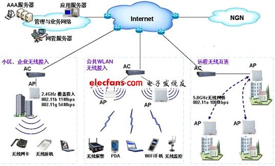 隨著Internet的日益普及和移動(dòng)終端(包括筆記本電腦、WiFi手機(jī)、PDA)的廣泛使用,人們對(duì)無(wú)線IP接入的需求迅速增長(zhǎng),無(wú)線局域網(wǎng)(WLAN)得到越來(lái)越廣泛的應(yīng)用。憑借無(wú)線接入技術(shù)本身具有的應(yīng)用靈活、安裝簡(jiǎn)便、建設(shè)周期短等優(yōu)勢(shì),WLAN作為一種高速無(wú)線接入手段,正在與有線網(wǎng)絡(luò)一起,構(gòu)建靈活、高效、完善的寬帶網(wǎng)絡(luò)。