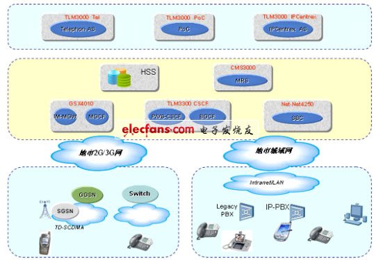 支持固網(wǎng)IP終端與移動(dòng)終端之間的VOIP、視頻電話等多媒體通信業(yè)務(wù);