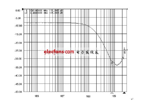 圖2:新型RC濾波器S21參數(shù)曲線。